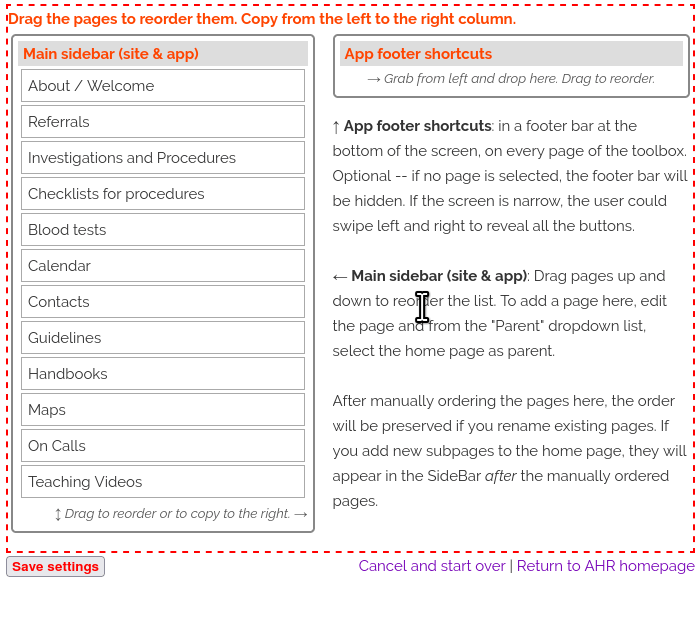 In some pages, you may have an additional "module" like a contacts directory, or a versioned guidelines table, or a shared calendar, or a feedback form. Editors can add some of these themselves, or you can tell us and we'll add them for you. It is up to you, talk to us when you need something.