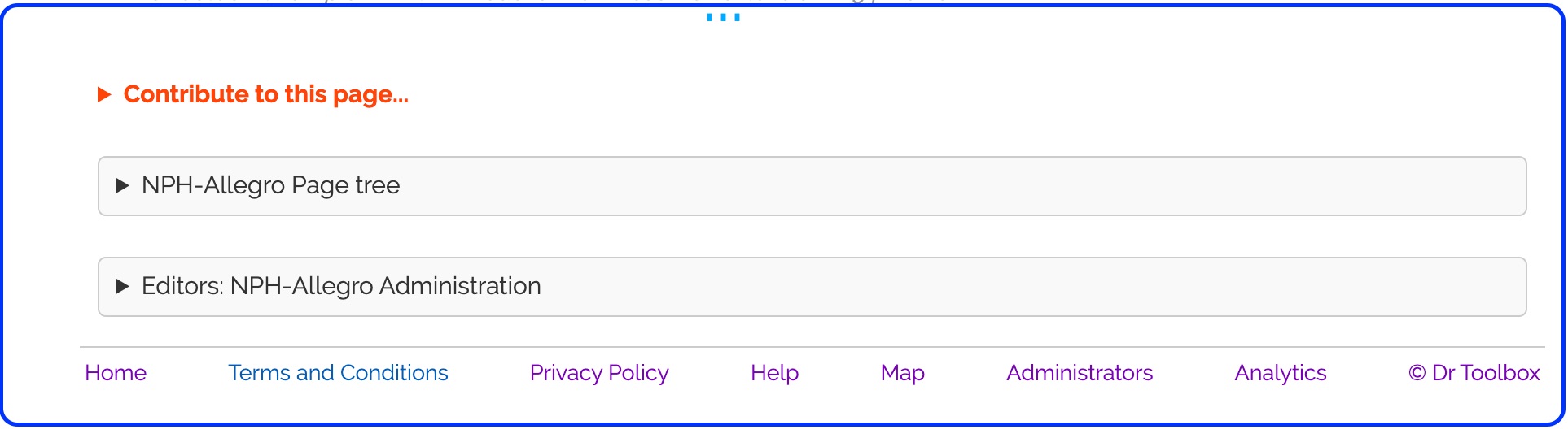 When signed in Lead Administrator will see the Wrench 🔧 to access all the editor and administrator tools. On this menu they will see links for: